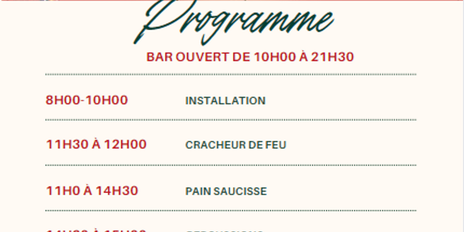 A barbecue will be on offer from 11am to 2pm to delight festival-goers' taste buds. And for those who want to keep the party going, there will be a concert from 6.30pm to 9.30pm. A bar and snack bar will also be available on site throughout the day.